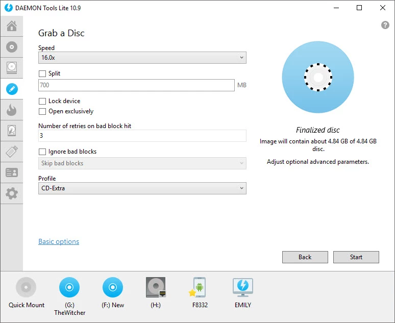 DAEMON Tools Lite 可让您快速访问数据,同时将 DVD 和 CD 内容存储在硬盘上。它允许用户向系统中添加最多四个虚拟 DVD 驱动器,以便创建和刻录光盘映像。